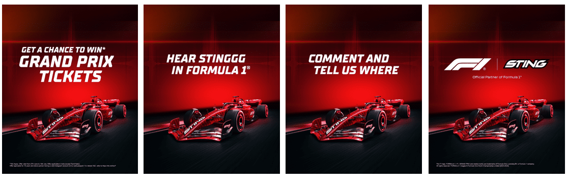 The contest kicked off with a post on the @sting_india Instagram handle, inviting fans to take part in this once-in-a-lifetime experience. The challenge Spot the iconic “Stinggg” sound wherever it’s heard-whether in across digital platforms, or in ads and share it for a chance to win F1 Grand Prix tickets. This unexpected sonic moment is set to spark a nationwide hunt, transforming Sting from just an energy drink into a cultural signal, a fandom trigger, and a sound that refuses to go unheard.