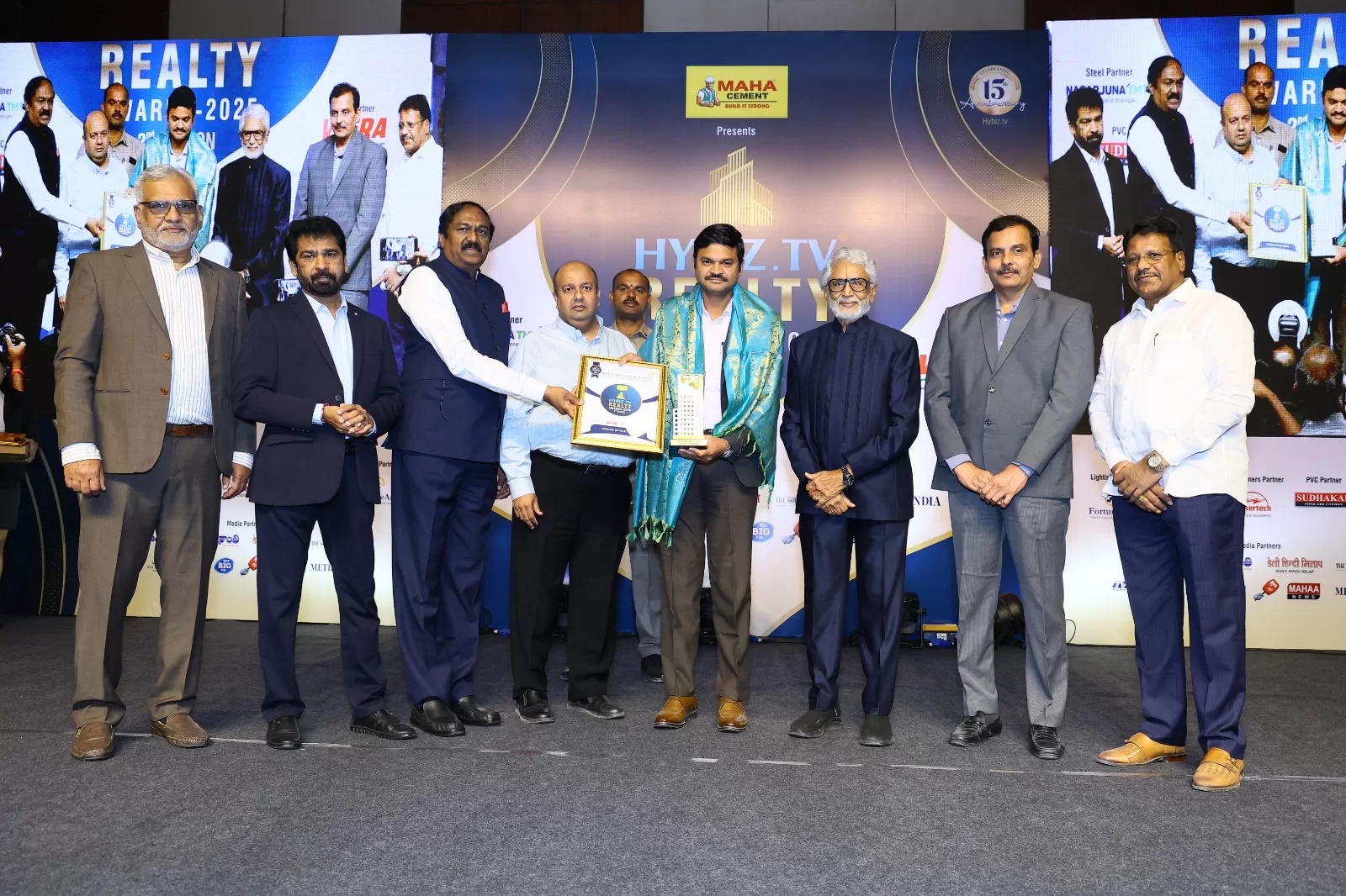 The Second edition of the Hybiz.TV Realty Awards was held with grandeur. The event took place at HICC Novotel in Hyderabad. As part of the event, awards were presented to organizations and individuals who have made significant contributions to the real estate sector. More than 40 awards were distributed, and 12 individuals received the prestigious Legend Award.