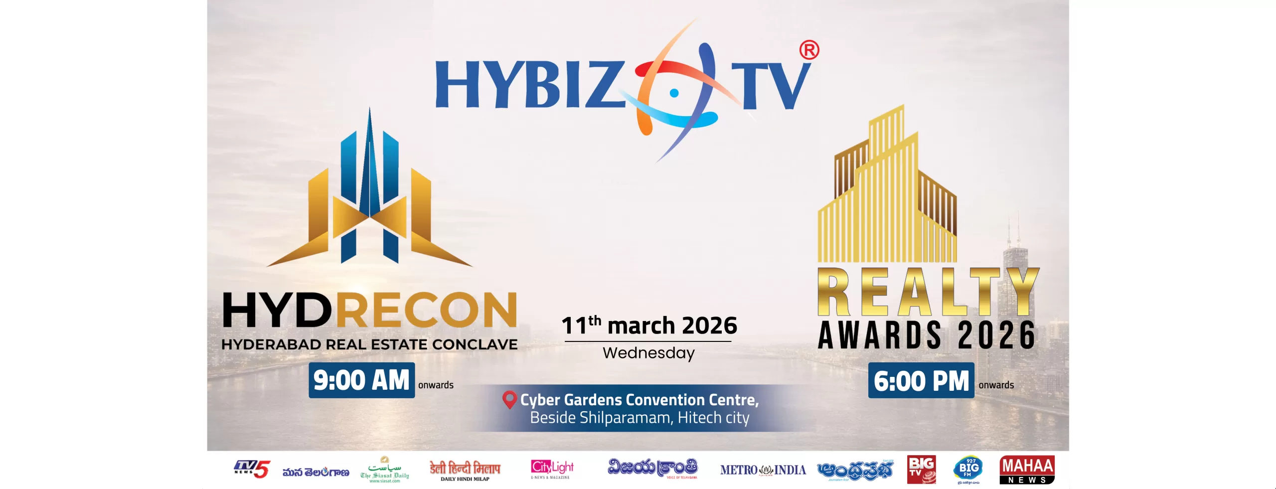 HYBIZ.TV proudly introduces a unique real estate platform featuring HYDERCON – Hyderabad Real Estate Conclave and the HYBIZ.TV Realty Awards, bringing together industry leaders, innovators, and achievers to shape conversations, build connections, and celebrate excellence in India’s fastest-growing real estate market.
