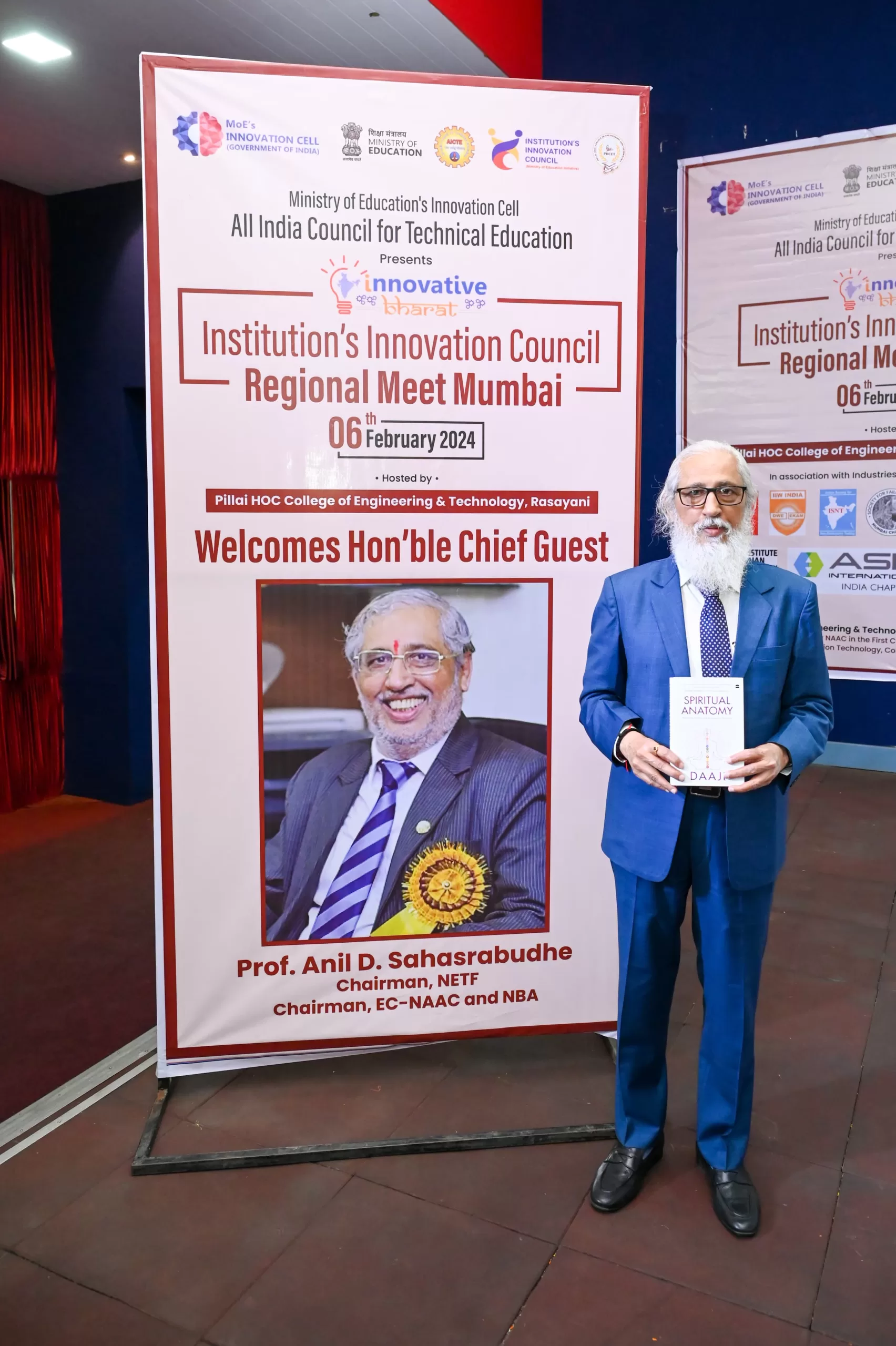 The Regional Meet hosted by Mahatma Education Society’s Pillai HOC College of Engineering and Technology in Rasayani witnessed the grand launch of “Spiritual Anatomy: Chakras and the Journey to the Center,” the latest masterpiece by Rev. Daaji, Guide of Heartfulness and President of Shri Ram Chandra Mission. The prestigious event, graced by Chief Guest Dr. Anil Sahasrabudhe, Chairman of AICTE, marked a significant milestone in fostering innovation and entrepreneurship within the educational ecosystem.