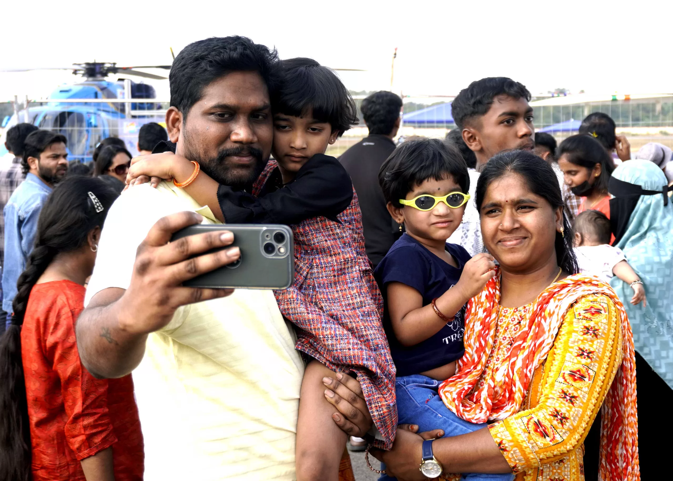 Wings India 2024 held in Begumpet, Hyderabad was no less than a thrill for the common people. Aircrafts performing stunts in the sky filled people with curiosity. People were seen capturing this unique moment in their cameras. Also enjoyed the atmosphere with the entire family.